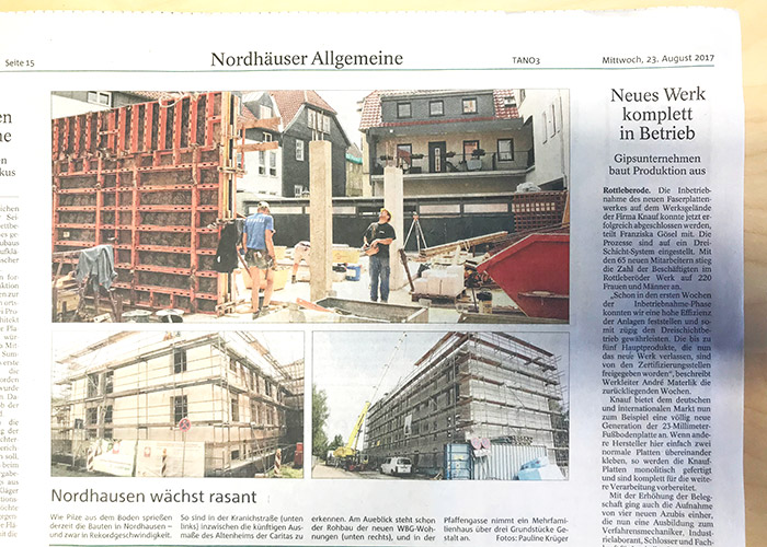 Knapp 12 Monate nach Baustart wurde am heutigen Tag Richtfest gefeiert. Die Thüringer Allgemeine Zeitung berichtet darüber in zwei Beiträgen: http://nordhausen.thueringer-allgemeine.de/... und http://nordhausen.thueringer-allgemeine.de/...
