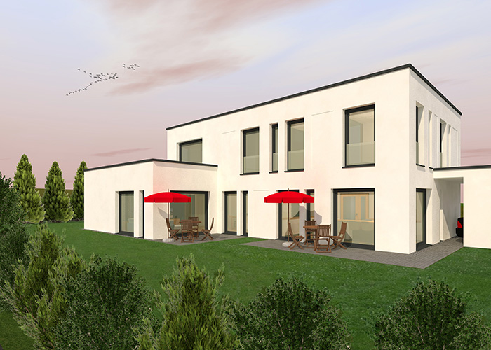 Das Architekturbüro Klima erarbeitete für private Bauherrn eine Entwurfs- und Genehmigungsplanung für ein Zweifamilienwohnhaus mit Doppelcarport in Petersdorf.